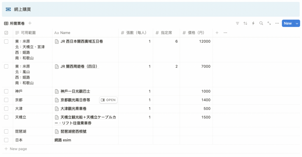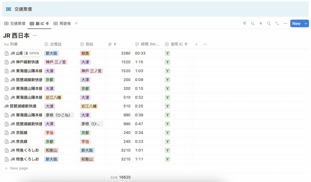 - 城市之間的交通費用:可以計算如果用 IC 卡的話,全部行程約多少,周遊卷有沒有比較划算,方便你決定要不要買周遊卷,或是買哪種周遊卷。