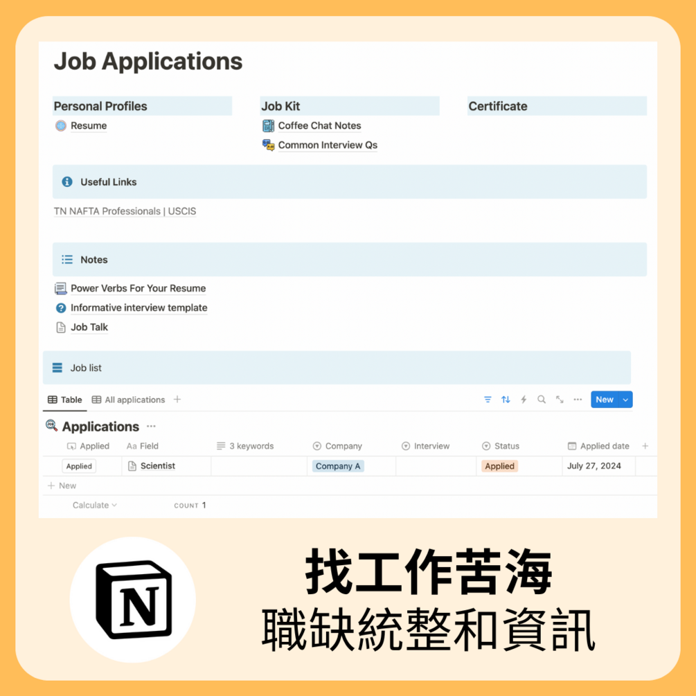 我懂,因為我也是。申請很多職缺的時候,就需要管理每個職缺的申請進度。